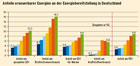 BMU-Grafik: Anteile Erneuerbarer Energien an der Energiebereitstellung in Deutschland Die Grafik zeigt die Entwicklung der Anteile (in %) der Erneuerbarer Energien (EE) im Zeitraum 1998 bis 2009: Endenergieverbrauch (EEV): Anstieg von 3,2 auf 10,3 Bruttostromverbrauch: Anstieg von 4,7 auf 16,1 EEV-Wärme: Anstieg von 3,6 auf 8,8 Kraftstoffverbrauch: Anstieg von 0,2 auf 6,1 im Jahr 2006, dann Abfall auf 5,5 Primärenergieverbrauch (PEV): Anstieg von 2,6 auf 8,9 Die Grafik ist abgebildet auf S.9 der BMU-Broschüre " Erneuerbare Energie in Zahlen" [pdf, 9,4 MB]