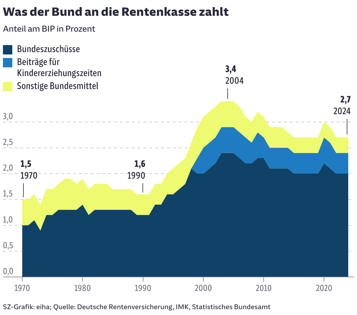 Wer bezahlt in Zukunft die Renten? Die Menschen leben länger, die älteren Jahrgänge sind größer als die jüngeren. Wie reagiert die Politik? Nach den Plänen der Koalition sollen die Renten weiter mit den Löhnen steigen, finanzieren sollen dies die Steuerzahler. Kann diese Rechnung aufgehen? IG(Quote Rentner/Beitragszahler 1962-2022); IG(Rentenniveau); IG(Bundeszuschuss 1970-2024); IG(Staatsschulden 2000-2024); zum externen Volltext